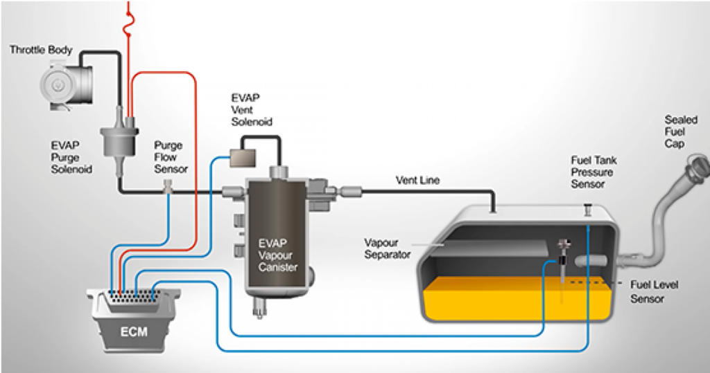 El sistema EVAP se encarga de evitar que los vapores de gasolina se liberen a la atmósfera, por lo que una falla puede afectar las emisiones y el funcionamiento del vehículo.